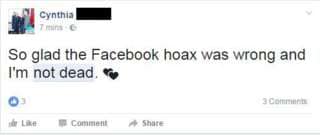 Users posted status updates to reassure friends and family they were not dead, despite Facebook’s message.